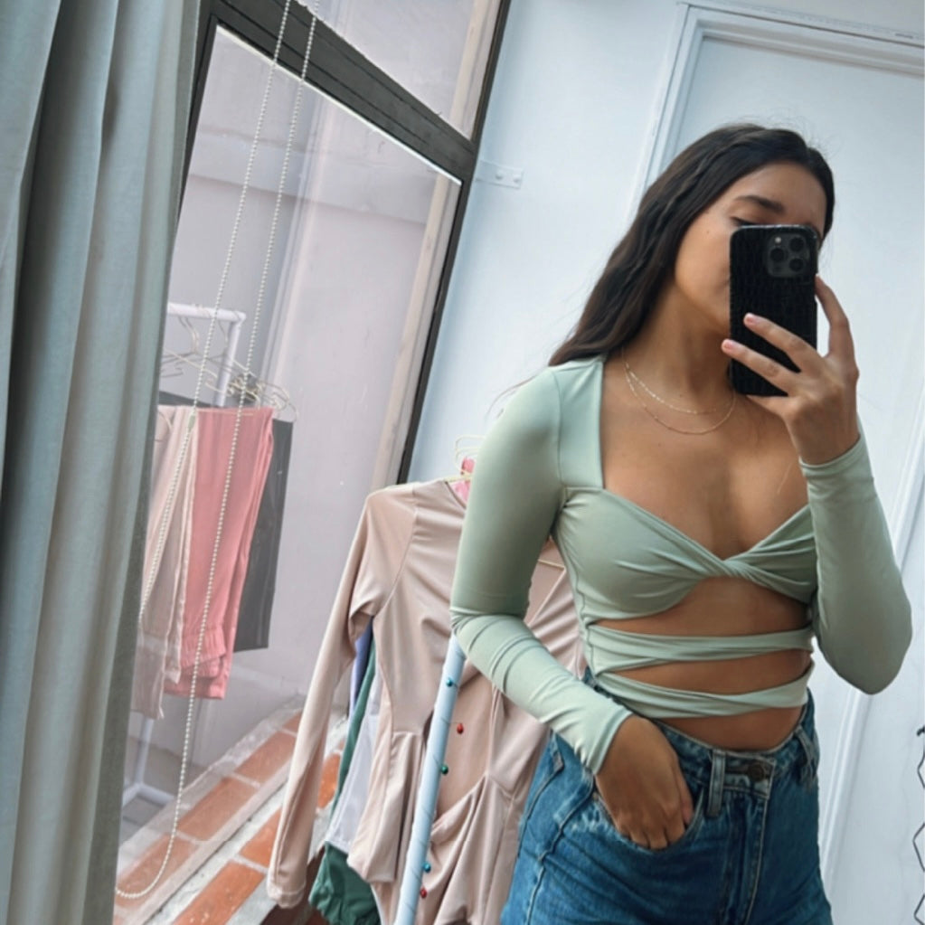 Esta referencia puedes usarla con el escote por delante o por detrás. Y puedes tener dos opciones para armar tus outfits